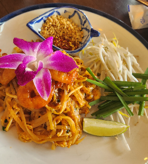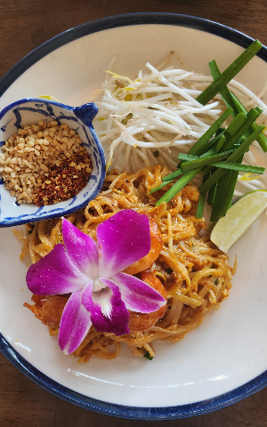 팟타이, 똠양꿍 등 좋아하는 메뉴가 예쁘게 플레이팅되어 나와서 기분은 좋아요. 꽃도 올려주시고요!